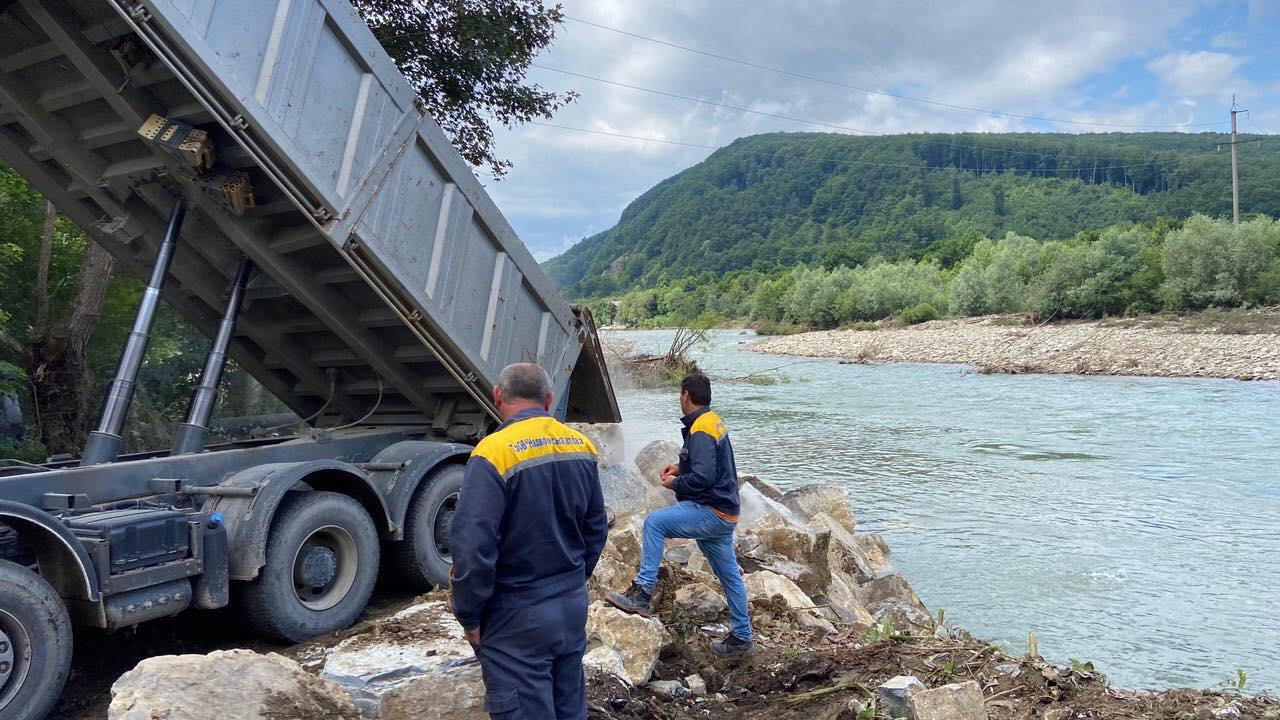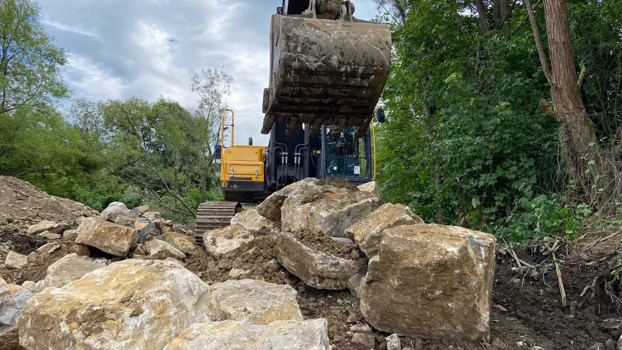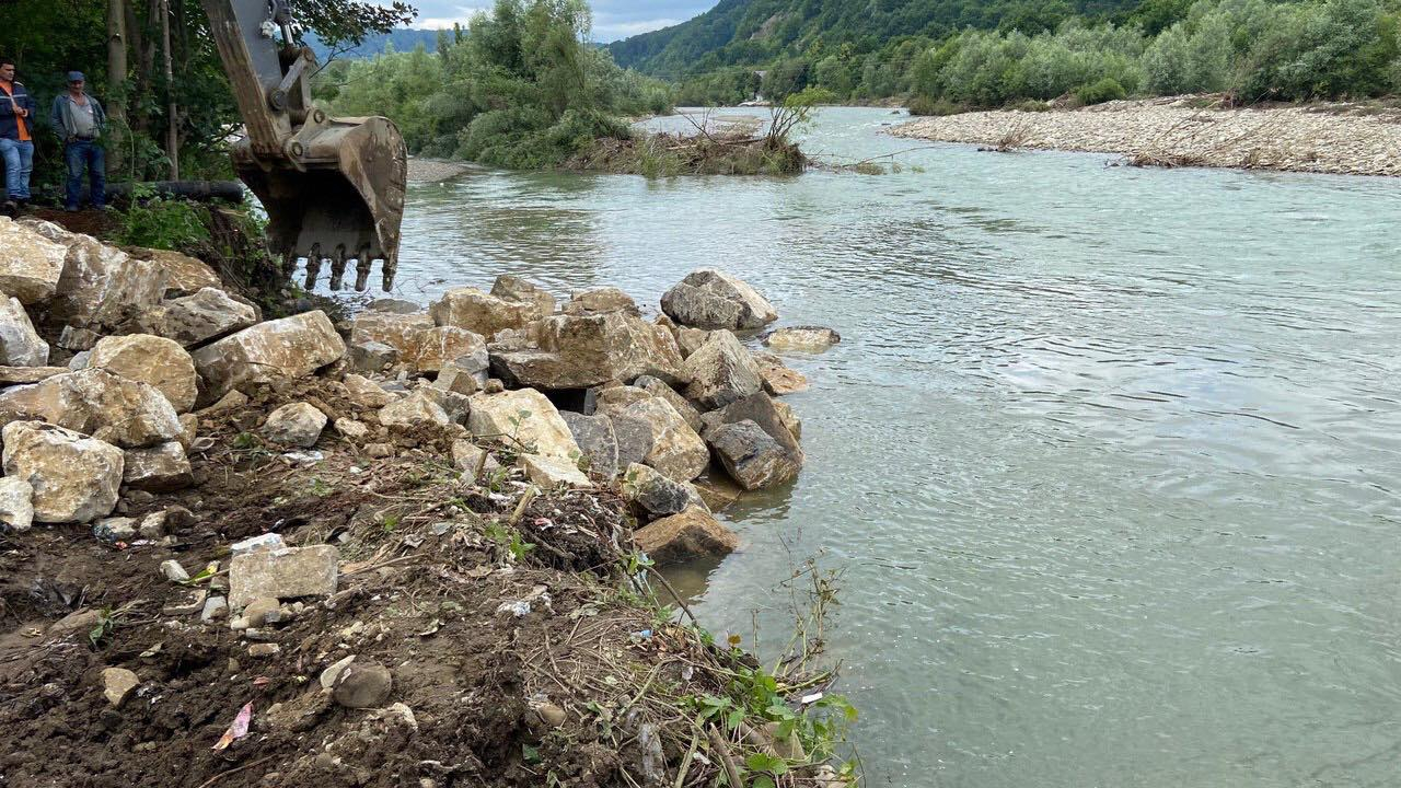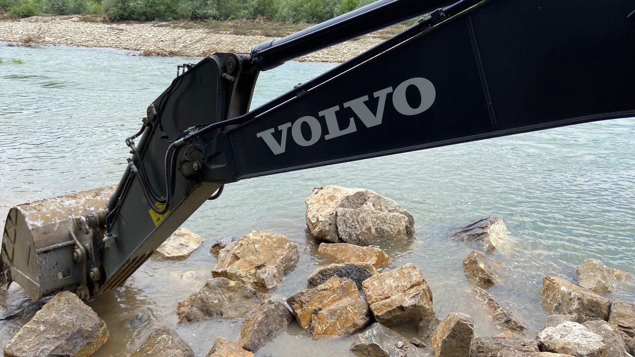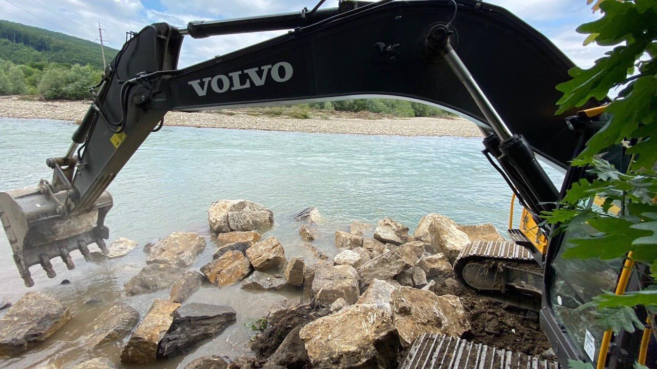 На звернення обласної та районних рад ТОВ "Надвірнянська автобаза" розпочала роботи по укріпленню дамби.