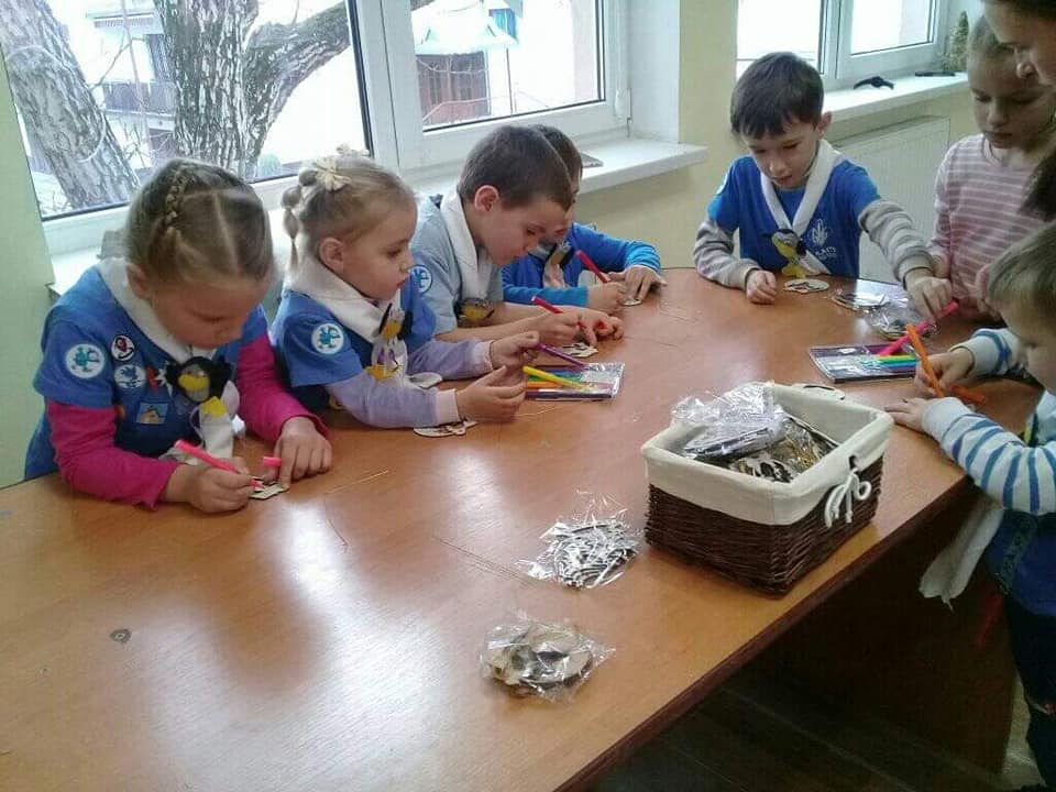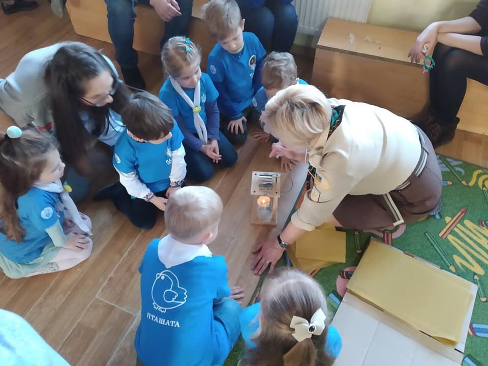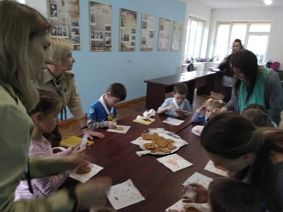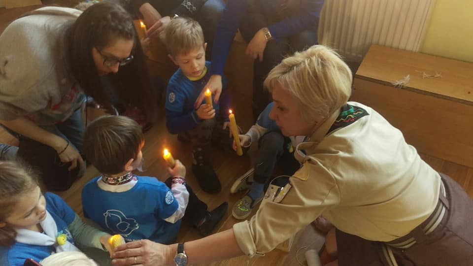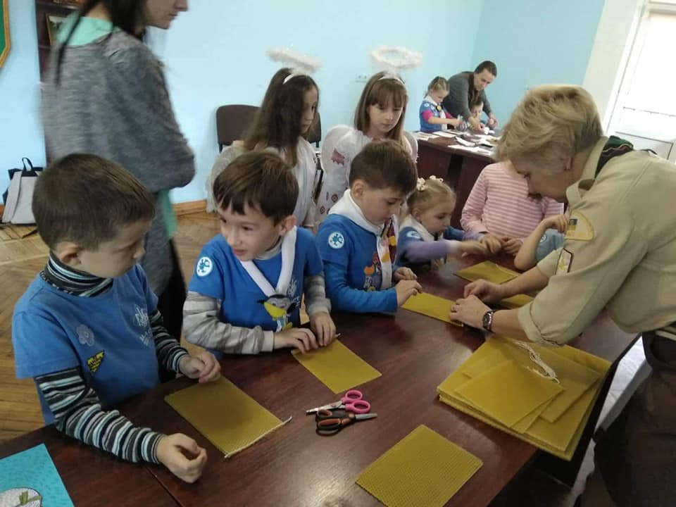 Також маленькі українські скаути виготовили ялинкову прикрасу, листівки для воїнів, розмалювали пряник, змайстрували справжню воскову свічечку та запалили Вифлеємський Вогонь Миру.