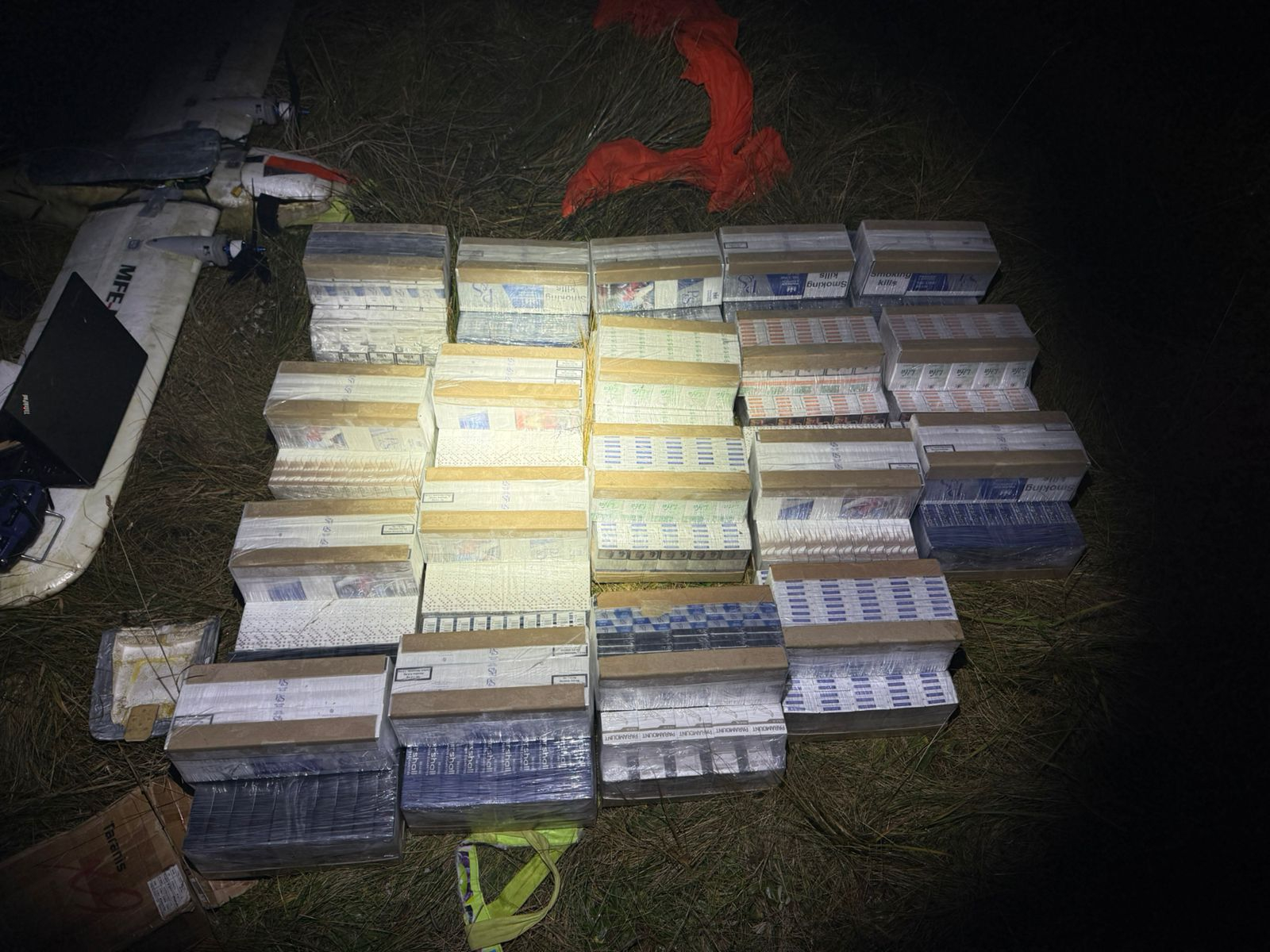 Поблизу міста Мостиська, за сім кілометрів від державного кордону, правоохоронці виявили двох місцевих жителів — батька та сина, які намагалися відправити за кордон 2 850 пачок сигарет без марки акцизного податку. Для цього контрабандисти використовували три безпілотники типу літачок.