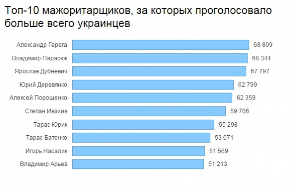 Видання "Новое время" склало рейтинг мажоритарників, які набрали найбільшу кількість голосів.