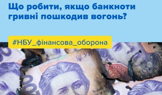 Під час активного ведення бойових дій в умовах війни в Україні почастішали випадки псування готівки вогнем. В Національному банку повідомили, що значно пошкоджені банкноти гривні через пожежу абощо можна віддати на дослідження для відшкодування збитків.
