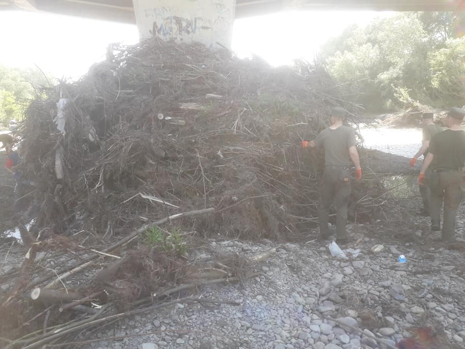 "Спільно з підрозділом Національної Гвардії, здійснюємо ліквідацію наслідків сильних дощів на березі Бистриці Солотвинської", - повідомили в комунальній установі МАРС.