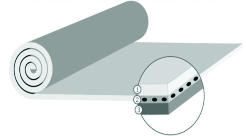 - верхнього еластичного шару - текстурованого полівінілхлориду, якому притаманні високі захисні властивості. До складу ПВХ включено стабілізатори, а також речовини, що забезпечують термостійкість і опірність УФ-випромінюванню. Щоб уникнути перегріву верхній шар зазвичай має світлий відтінок;