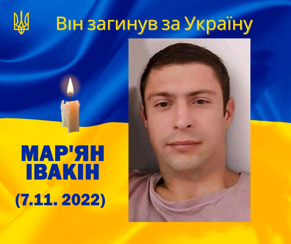 У бою з російськими окупантами загинув військовослужбовець Мар'ян Івакін.