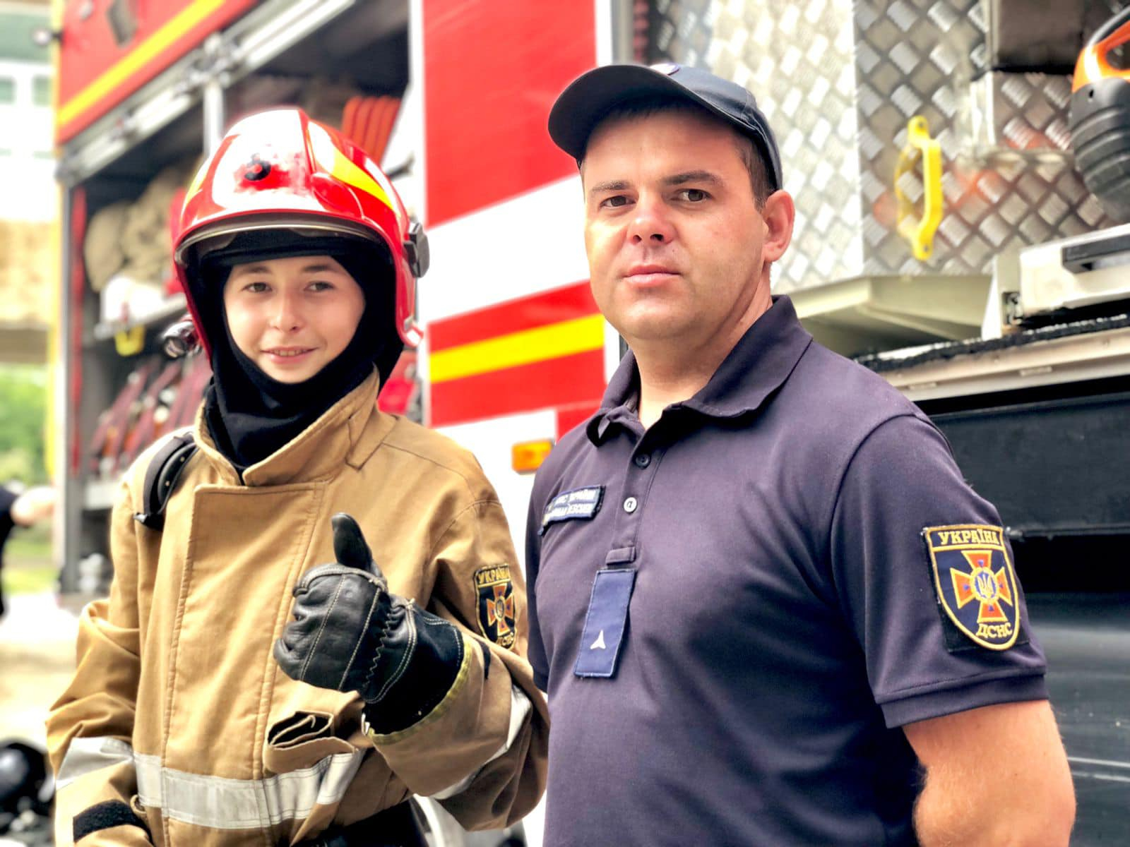 Пізнавальне навчання для вихованців провели і рятувальники. Вони показали спецспорядження для гасіння пожежі. А відтак кожен з вихованців міг спробувати себе в ролі надзвичайника.