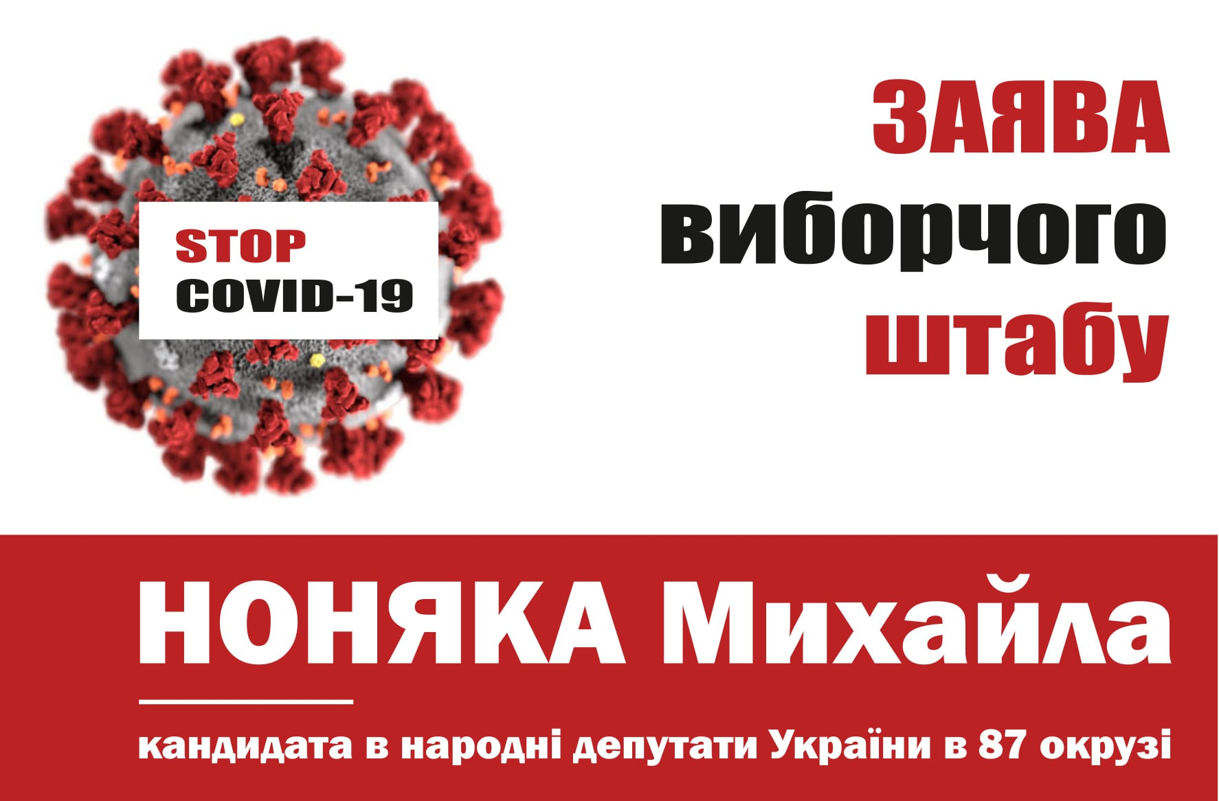 У мережі з'явилось звернення виборчого штабу Михайла Ноняка, кандидата в народні депутати України по виборчому округу №87, у якому закликають дотримуватись усіх карантинних обмежень.
