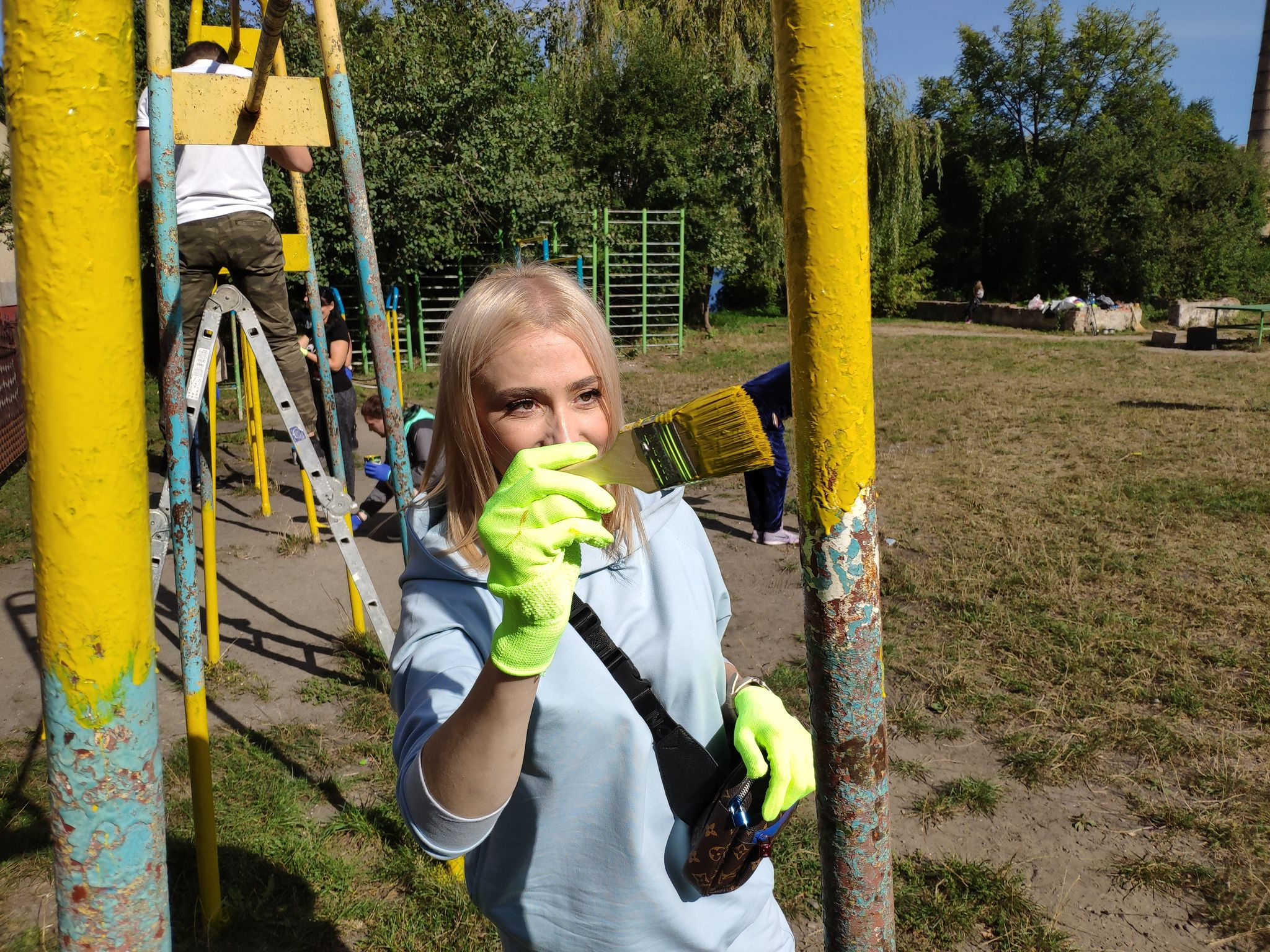 На толоку зібрались з десяток небайдужих мешканців мікрорайону. Люди пояснюють, що важливо підтримувати спортмайданчики в чистоті, аби дітям і мешканцям мікрорайону хотілось тут займатись спортом.