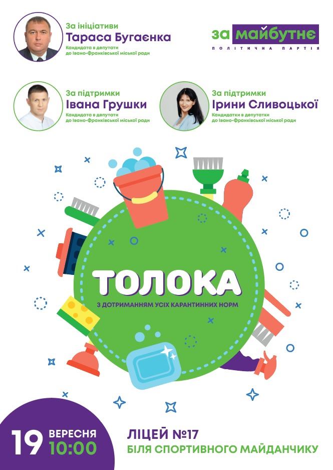 «Чужих дітей не буває, а тому я разом з однодумцями вирішили провести цю толоку. На майданчику постійно безліч дітей та молоді, а тому ми зобов’язані зробити тут комфортне місце. Будемо фарбувати, прибирати та відновлювати спортивний майданчик. Запрошуємо всіх небайдужих доєднатись до нас», - зазначив Тарас Бугаєнко представник команди «ЗА МАЙБУТНЄ».