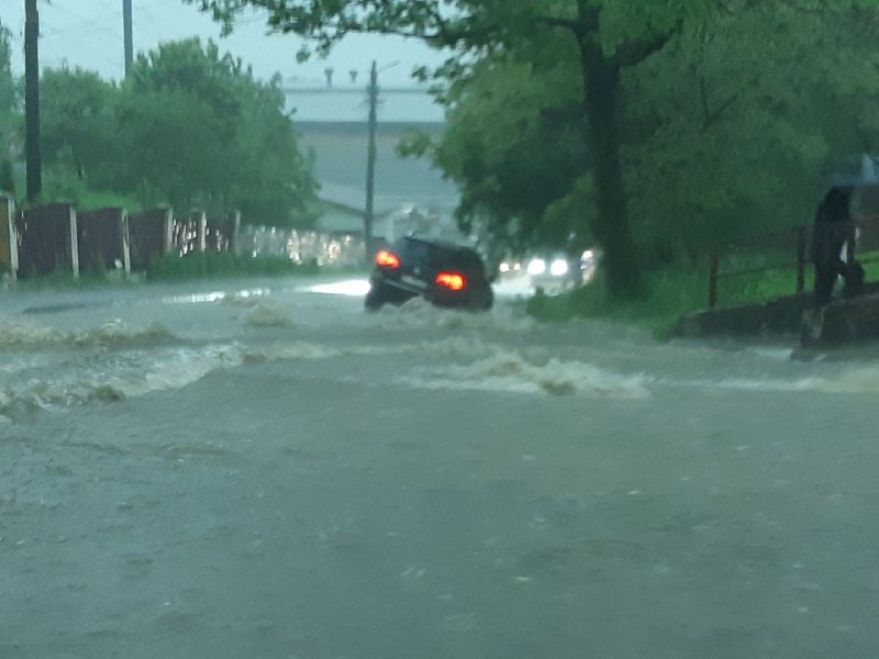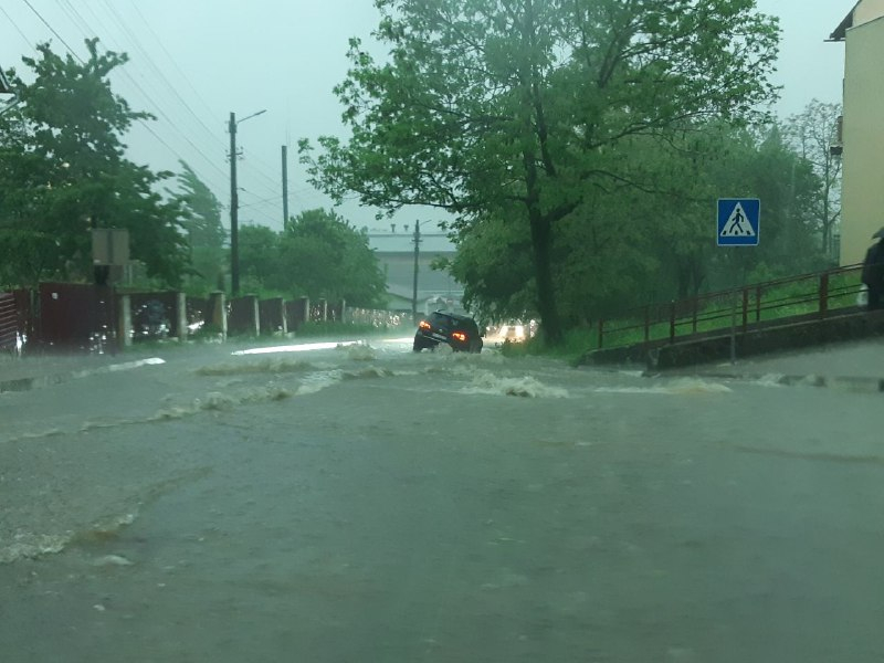 Вулиці Калуша перетворилися у повноводні ріки, а автомобілі - на кораблі.