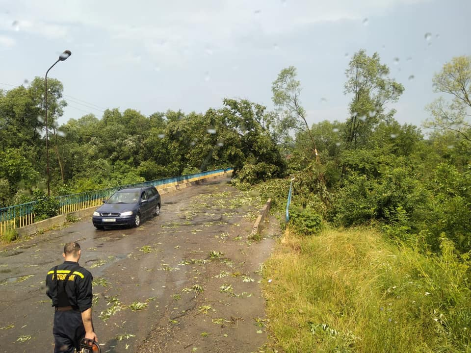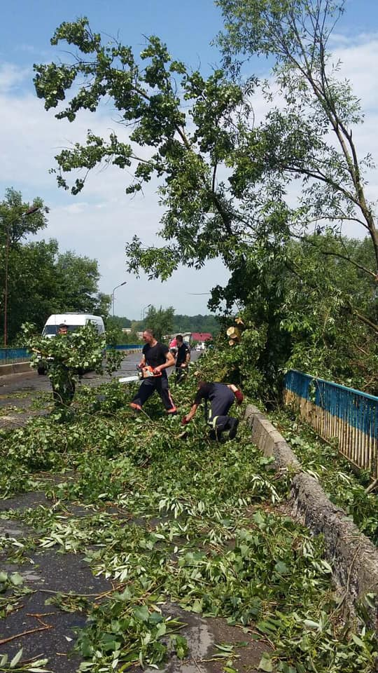 Через кілька десятків повалених дерев заблоковано кілька вулиць та автомобільний міст через Бистрицю Солотвинську.