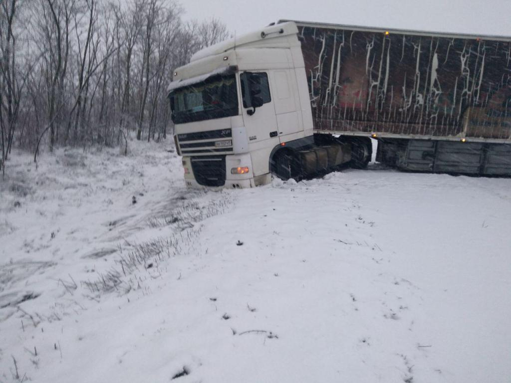 Водій вантажного автомобіля «Сканія», не впорався з керуванням та допустив з’їзд тягачем у кювет, кузовом частково перегородивши проїзд по автодорозі Н-09 «Мукачево-Львів».