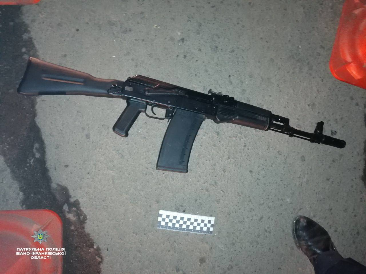 Поруч на землі лежала Сайга-410К — самозарядна рушниця, розроблена на базі автомата Калашникова. Дозволу на зброю чоловік не мав.