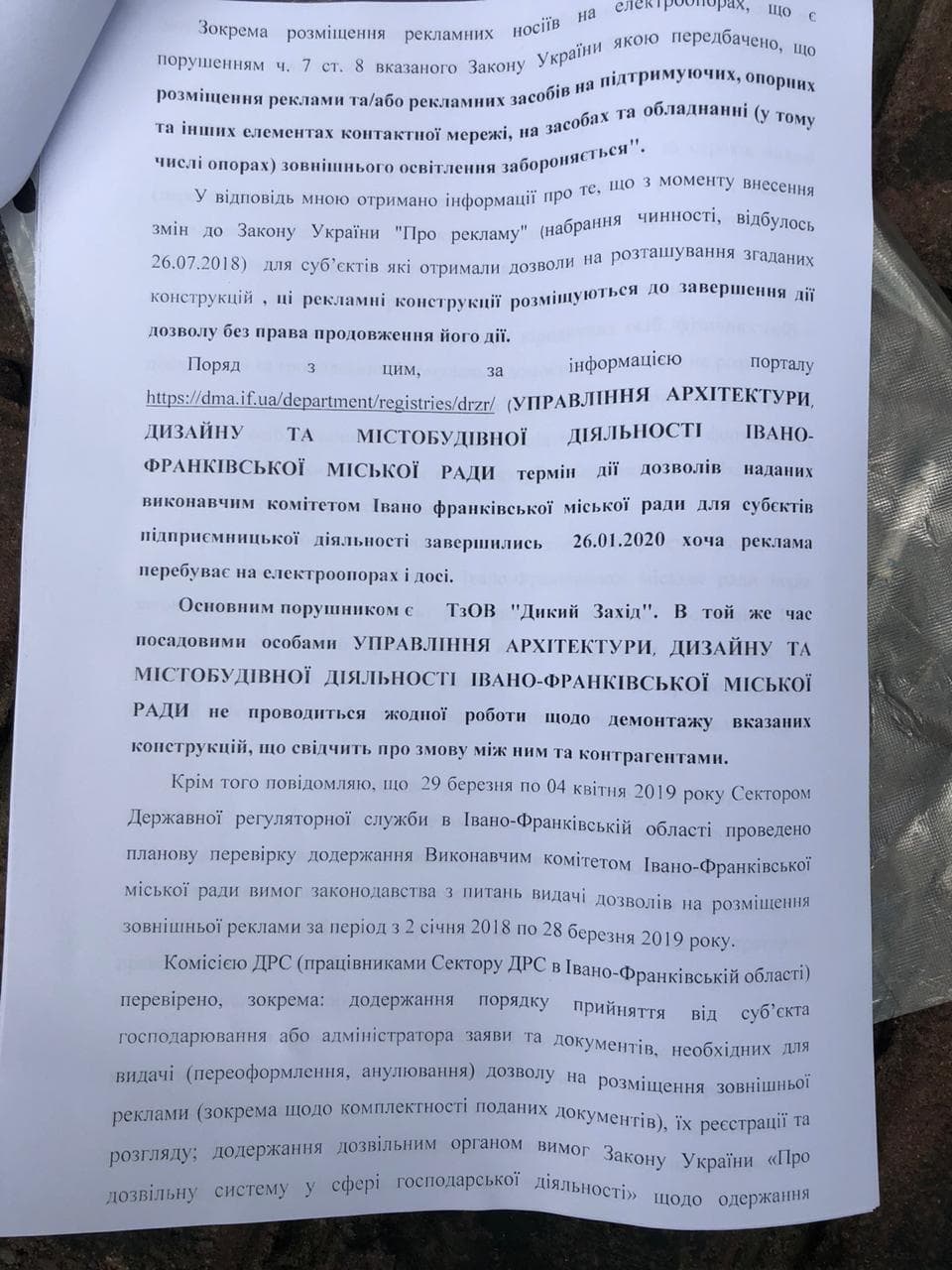 Маю документи, згідно з якими терміни договорів щодо розміщення конструкцій давно закінчені. До того, нагадаю комісії з благоустрою про прийнятий у 2018 році закон ВР щодо заборони розміщення таких конструкцій на електроопорах.