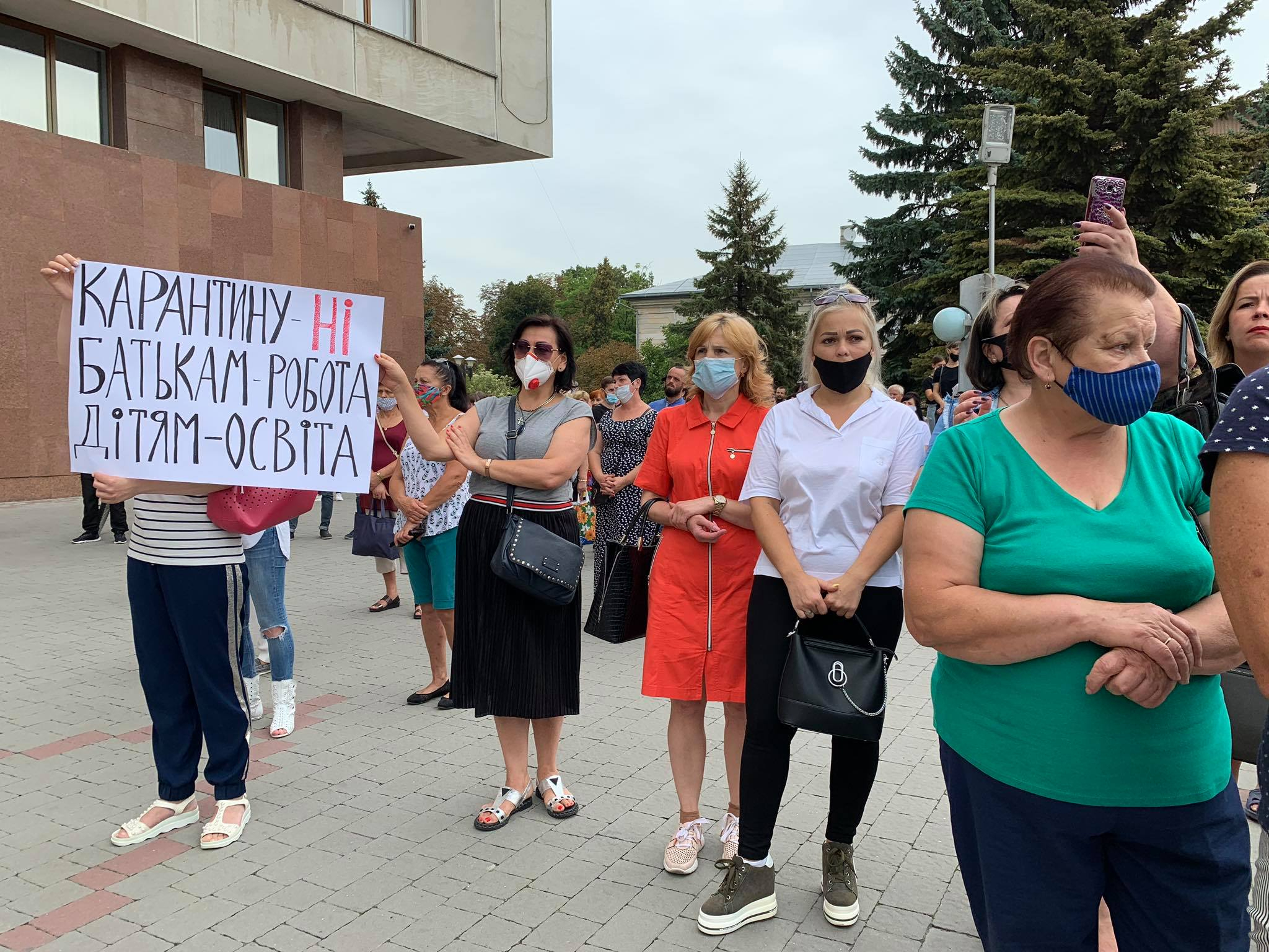 В Івано-Франківську сотні людей - освітяни, приватні підприємці, працівники готельно-ресторанного бізнесу вийшли під стіни адмінбудівлі ОДА із протестом проти запровадження в місті обмежень "червоної" карантинної зони.