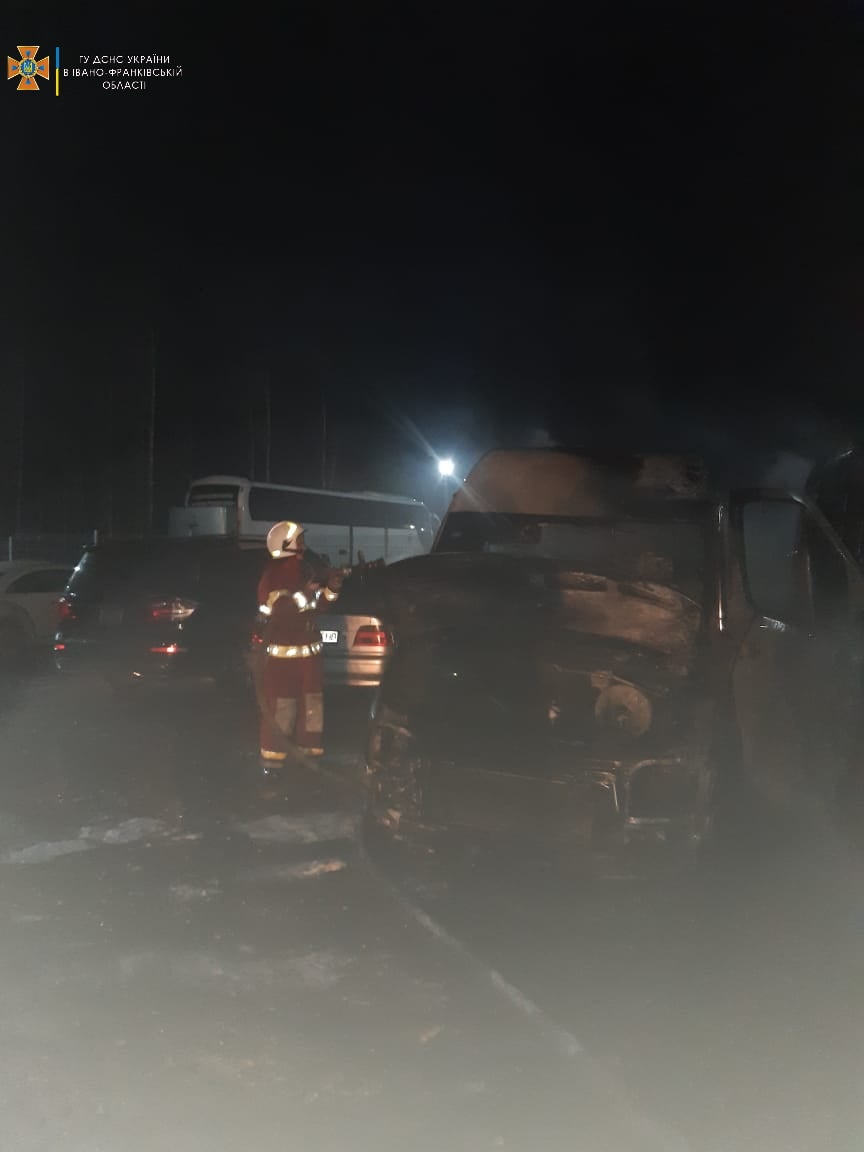 Один з автомобілів – «Мерседес Спринтер» – зайнявся близько 02.50 години 18 лютого у приватному господарстві в селі Пнів, Надвірнянського району. Внаслідок пожежі пошкоджено моторний відсік.