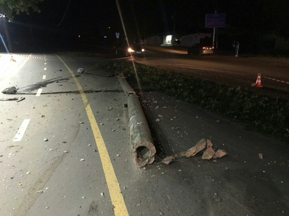 Нічна ДТП у Франківську: Citroen наїхав на електроопору і перекинувся (ФОТО+ВІДЕО)