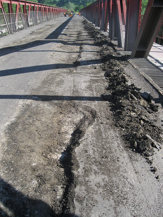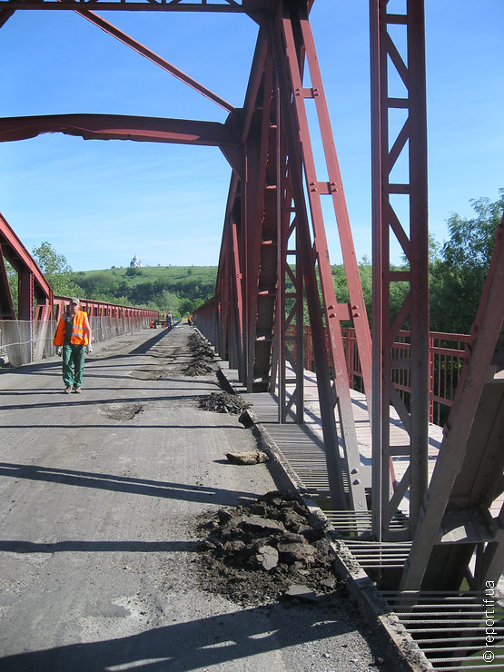 Служба автомобільний доріг області почала ремонт мосту через Дністер на трасі Івано-Франківськ – Тернопіль. Міст перекритий. Працівники облавтодору взялися за шви.