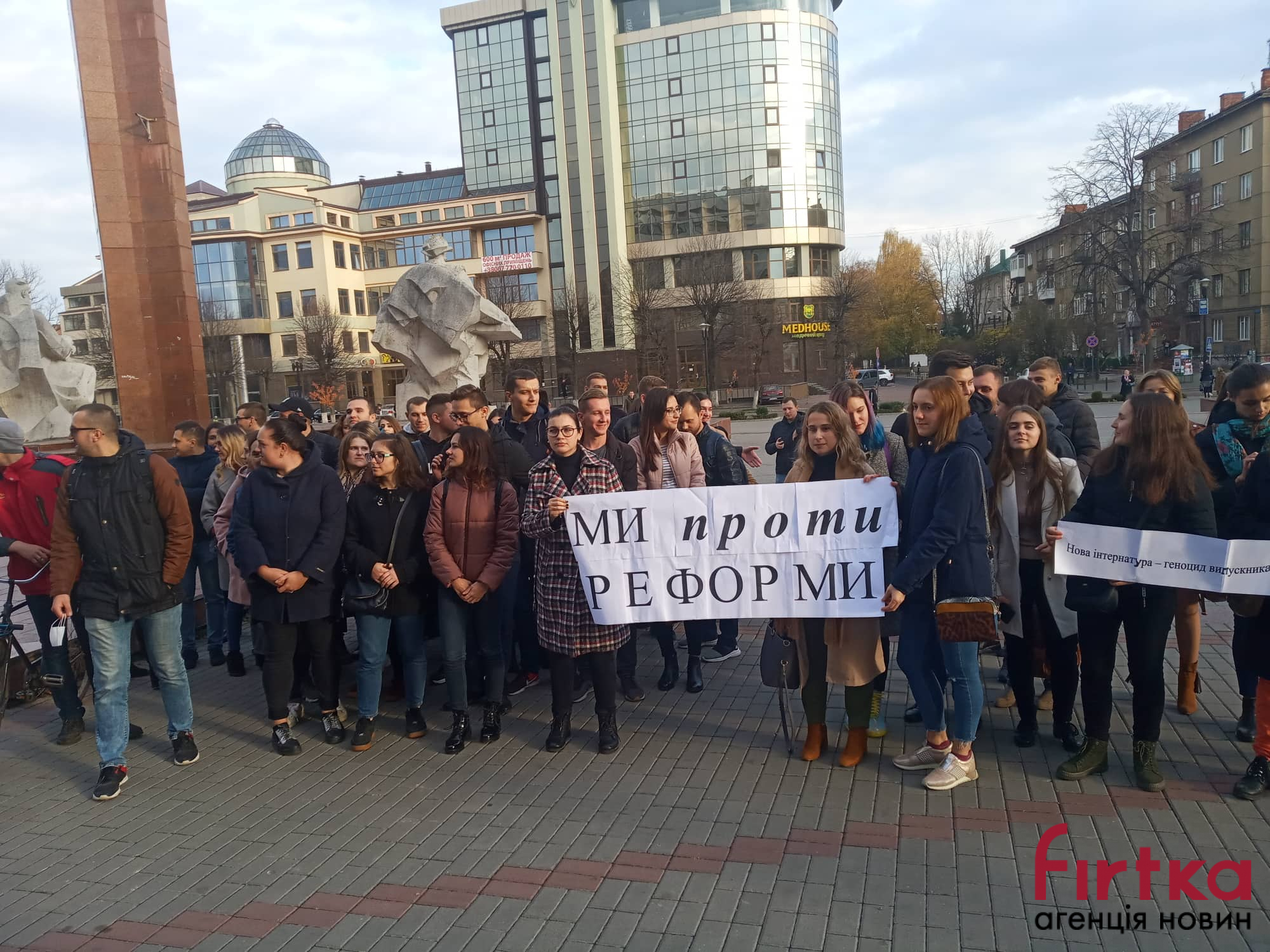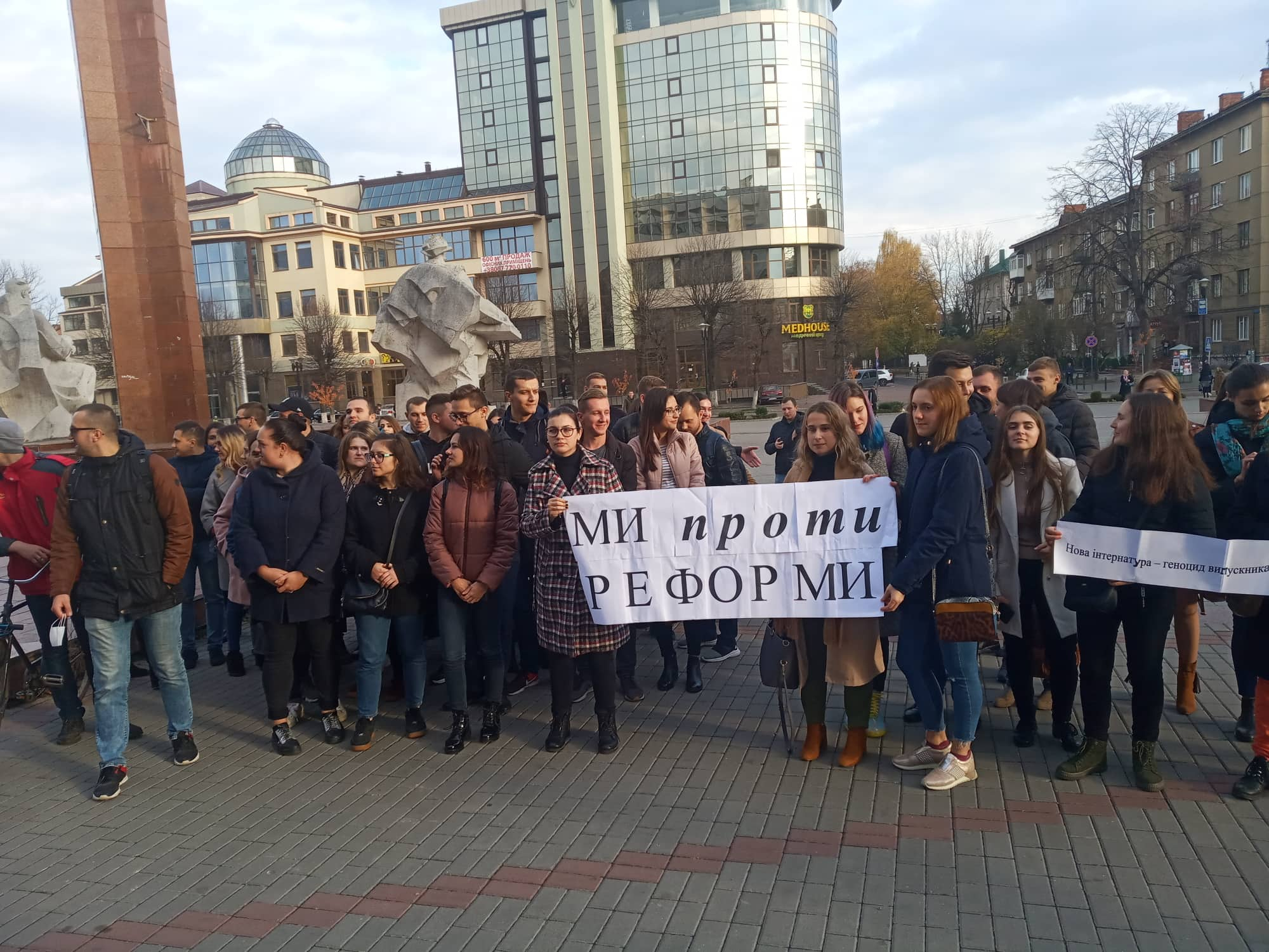 Сьогодні в Івано-Франківську під стінами головної адміністративної будівлі вийшли на мітинг студенти-медики.