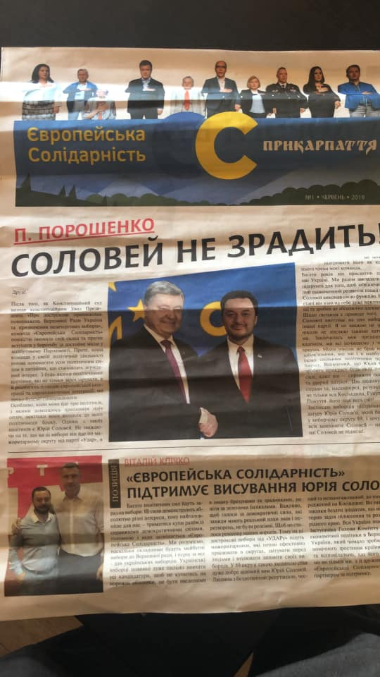 На Прикарпатті зафіксовані чорні технології. Проти кандидата у народні депутати по одномандатному виборчому округу №89 Юрія Солов'я розповсюджують фейкове видання з чорним піаром.