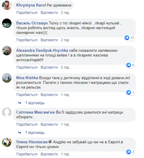 У коментарях люди додають, що у палатах ще й жахливий запах, обідрані стіни, погане опалення, а туалети геть не придатні до використання.