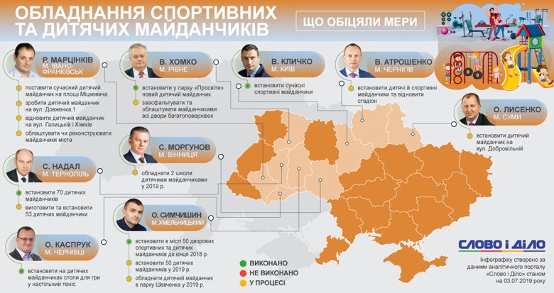 «Слово і Діло» пропонує подивитися, що обіцяють і роблять мери обласних центрів з приводу обладнання спортивних та дитячих майданчиків.
