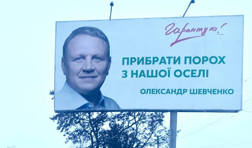 Днями в деяких областях України були розміщені білборди Олександра Шевченка з гаслом «Гарантую! Прибрати порох з нашої оселі».