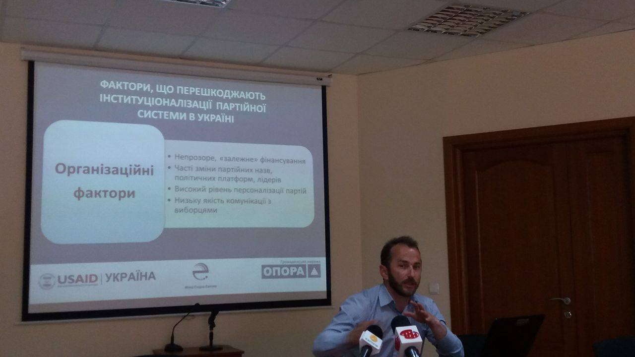 Координатор Громадської мережі ОПОРА в Івано-Франківській області Іван Маруняк виділив фактори, які перешкоджають інституціалізації партійної системи в Україні: інституційні, соціальні та нестабільні.