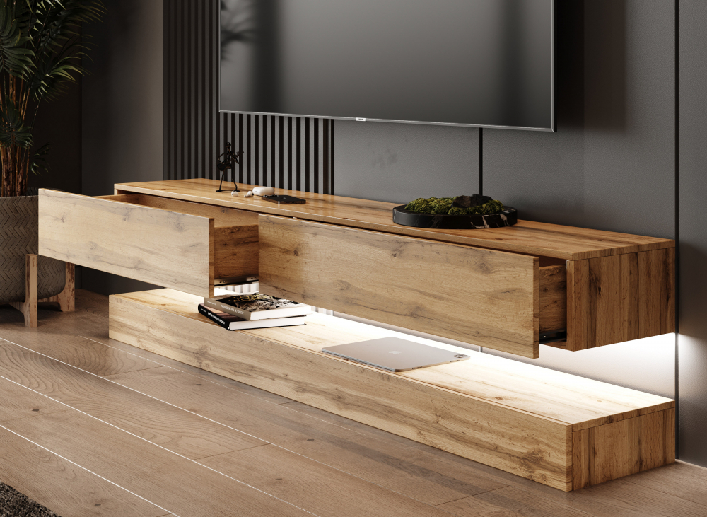 Цікаві дизайнерські рішення та багатофункціональність тумб під телевізор