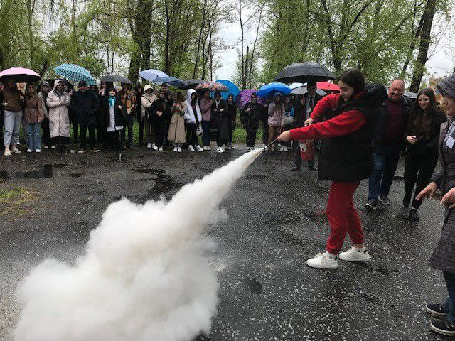 Тетяна Скусяк, інженер з охорони праці та протипожежної безпеки, провела інструктаж щодо протипожежної безпеки, ознайомила з правилами використання вогнегасників та на практиці разом з учасниками тренування гасили (умовно) пожежу.