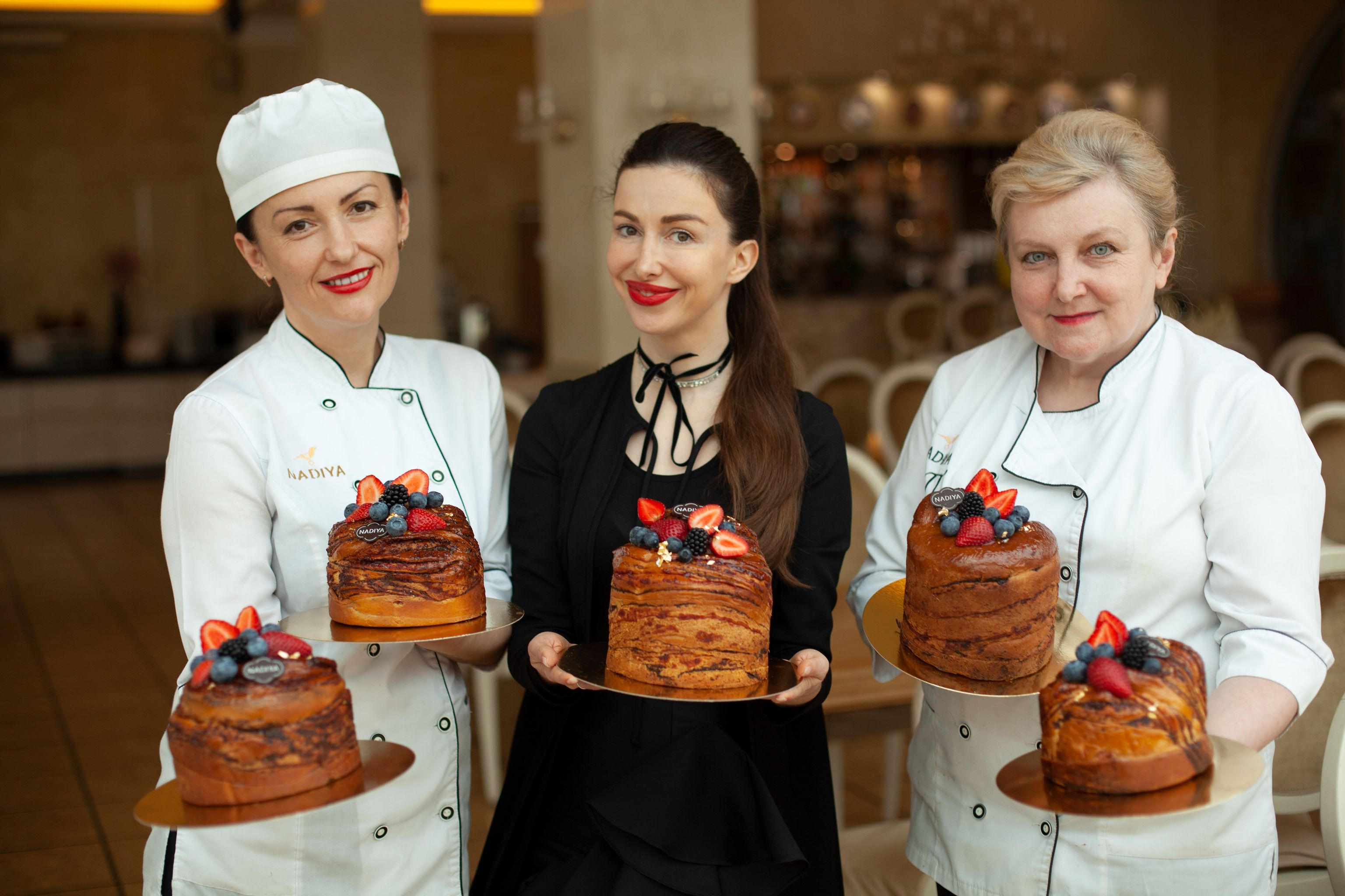 Зверху паска прикрашена ягодами з власного органічного саду і від карпатських виробників, та шматочками їстівного золота, що символізує сонячні промені над нашою рідною країною.