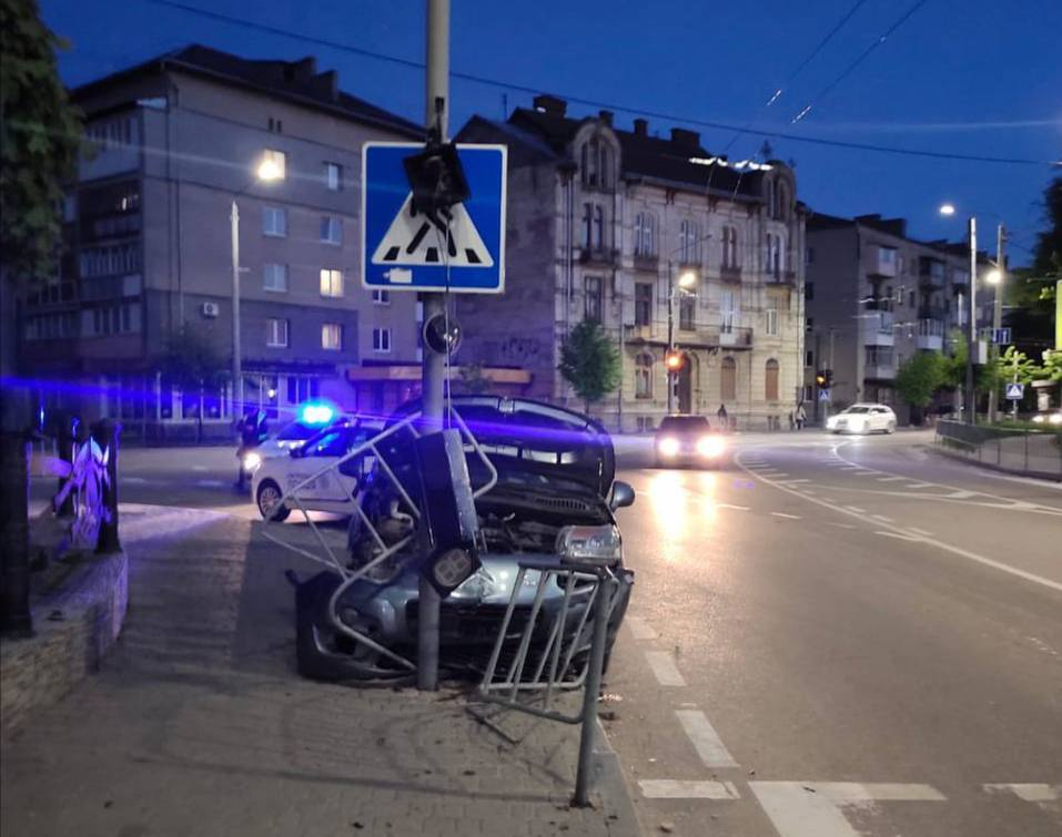 Вчора, 11 травня, патрульні отримали виклик про ДТП на вулиці Мазепи. Екіпаж, що прибув на місце пригоди встановив: водій автомобіля Citroën не дотримався безпечного швидкісного режиму, не був уважним за кермом та допустив наїзд на світлофор та огорожу.