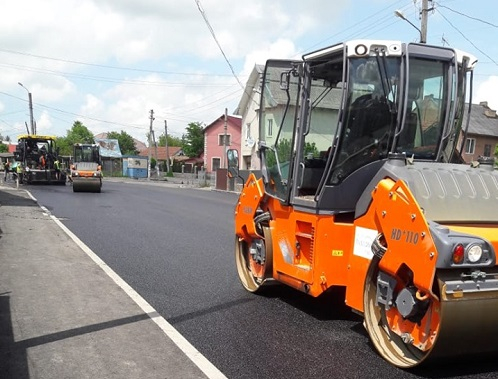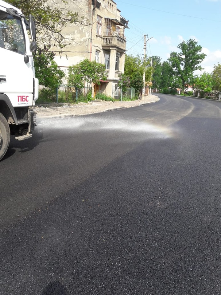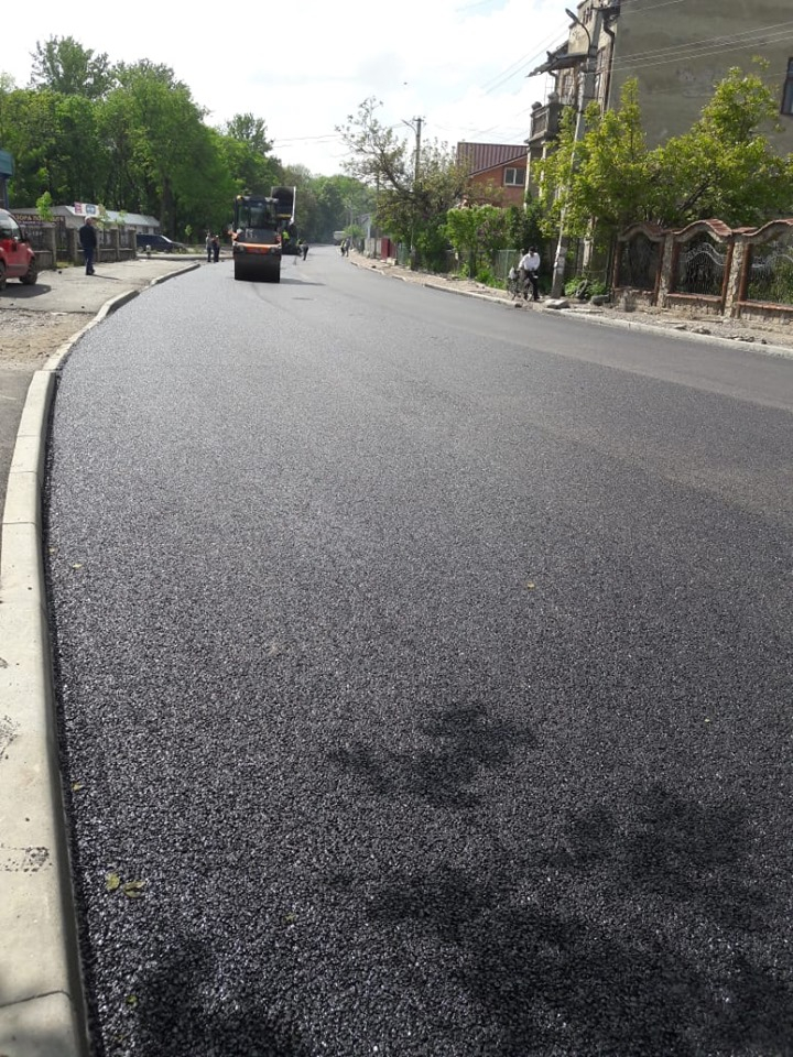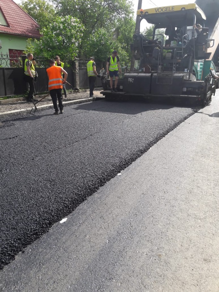 Працівники буковелівської фірми «ПБС» влаштували верхній шар щебенево-мастикового асфальтобетону біля Торговиці у місті Коломия.