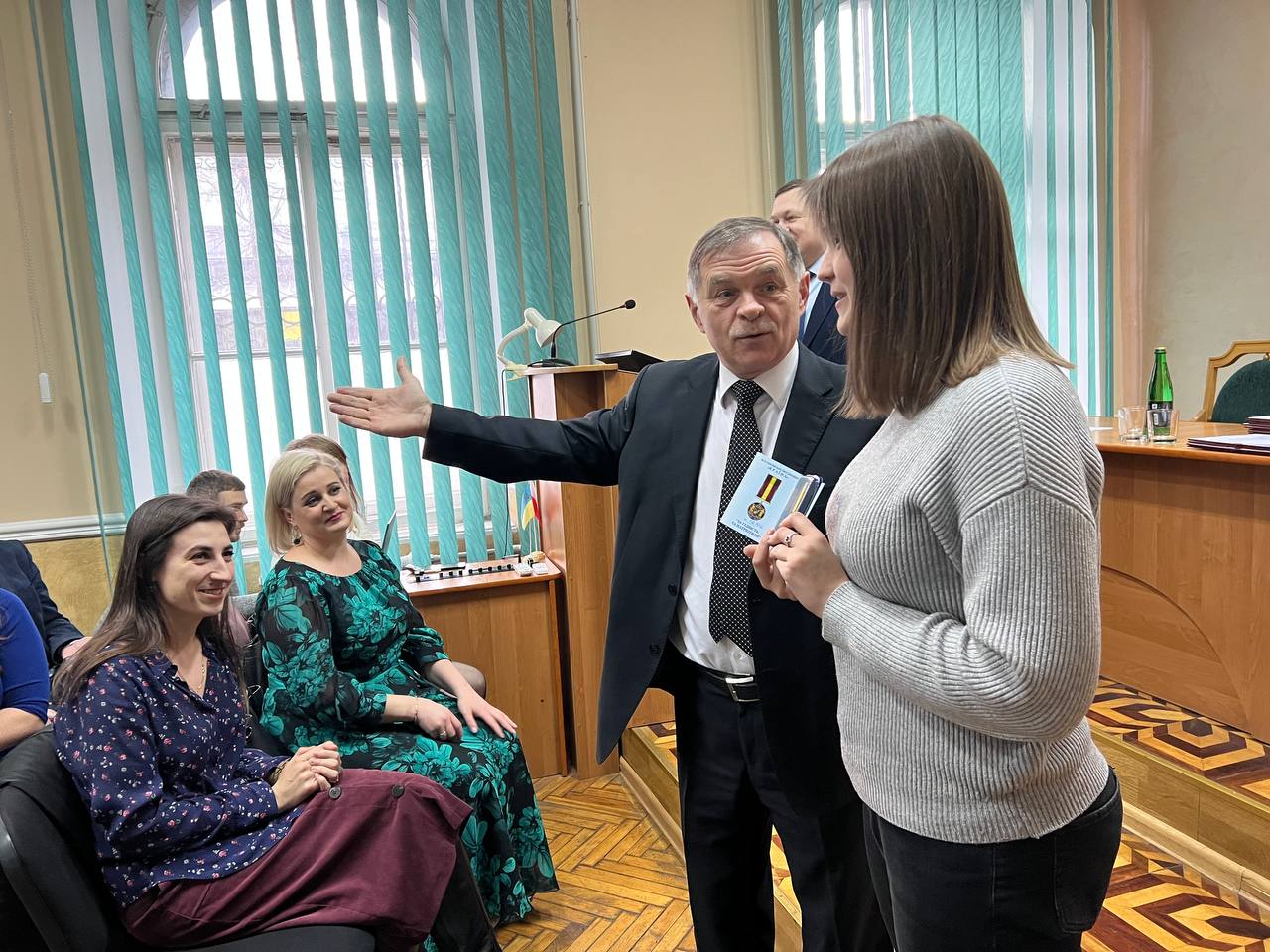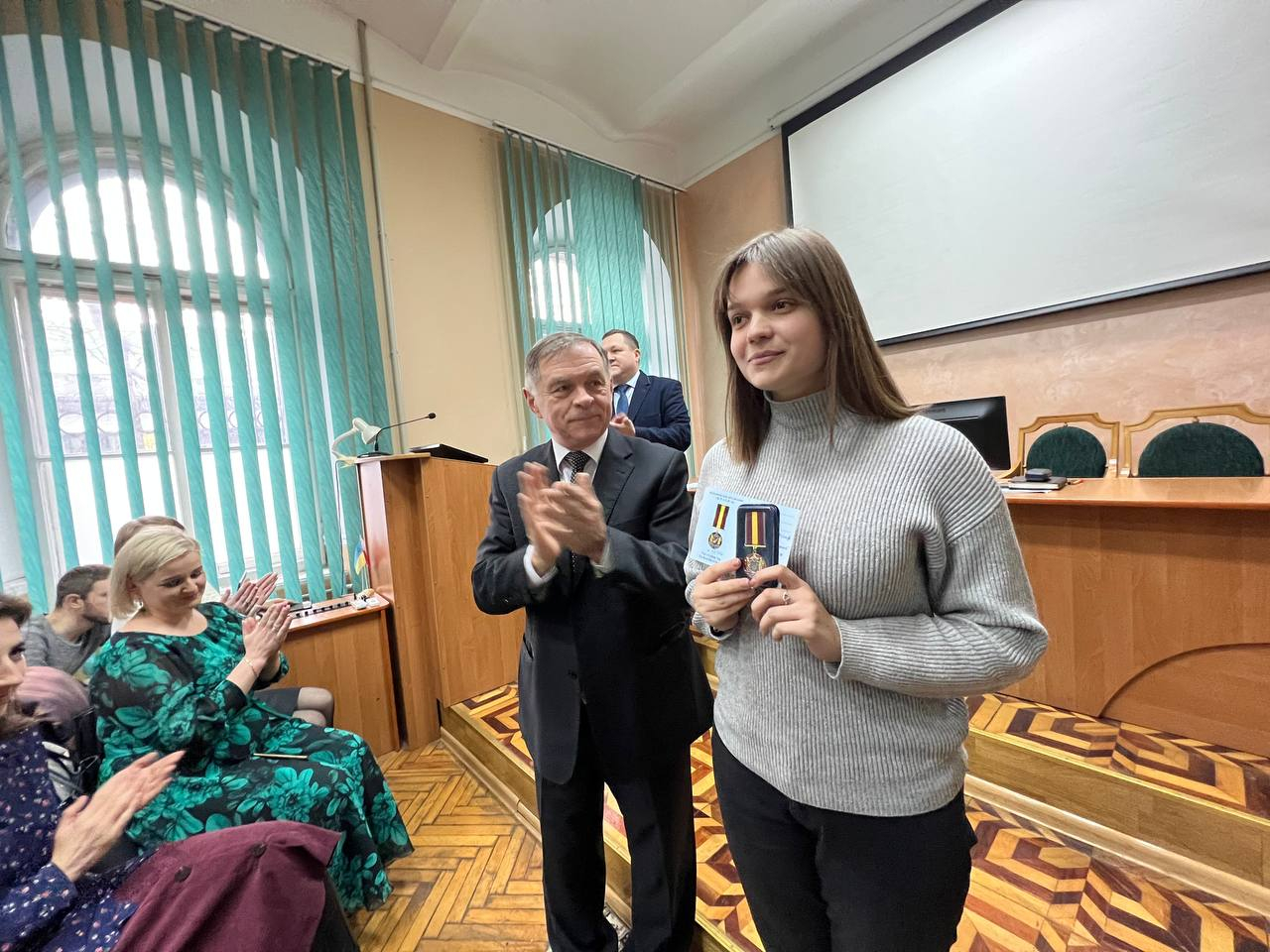 На засіданні Вченої ради, яке відбулося 31 січня, ректор ІФНМУ Микола Рожко вручив відзнаку студентці четвертого курсу медичного факультету Маргариті Козуб за активну волонтерську роботу.