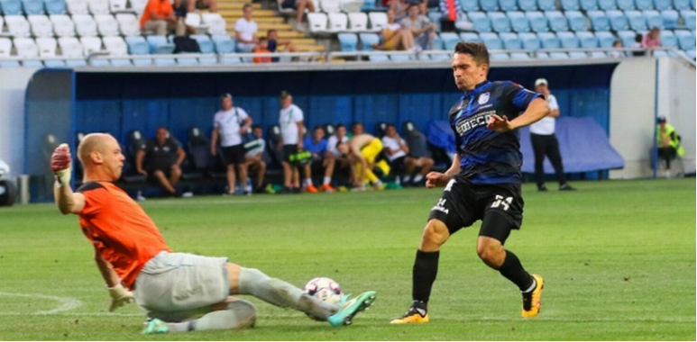 І відразу ж відчули на собі тиск одеситів. Уже в дебюті приймаюча сторона повела в рахунку. Ярошенко здорово розігнав цю атаку через правий фланг, навісив на дальню стійку. Там суперника випереджав правий захисник Бойко, але за інерцією ледве не влетів з м’ячем у ворота. Воротар із цією несподіваною загрозою справився, але Танчику ніхто не міг завадити добити з близької відстані – 1:0.
