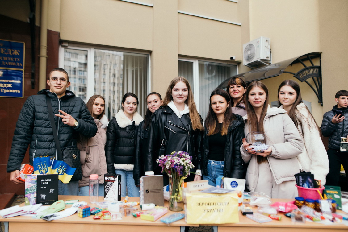 Студенти перших курсів Університету Короля Данила й Фахового коледжу УКД, щоб зібрати кошти для військових, підготували handmade-вироби, трофейні боєприпаси з передової, ляльки-мотанки ручної роботи, солодощі з передбаченнями, випічку, напої та книги та провели благодійний ярмарок.