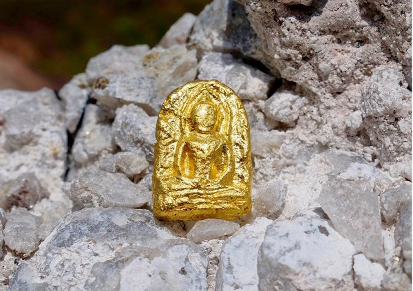«Це особлива історія. Я знайшов амулет, який датується XVI століттям в Таїланді та покрив його золотом - «оживив», перетворив його в форму золота, вічну пам'ять матерії" - розповідає про свій твір автор.