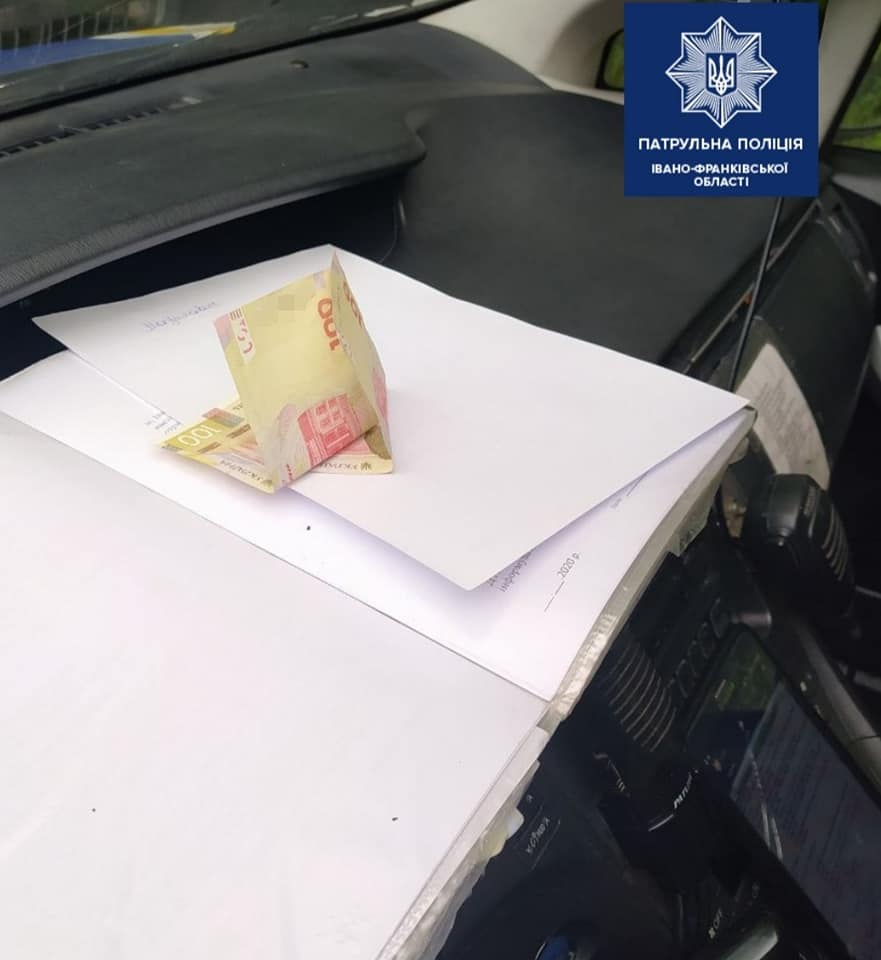 Правоохоронці попередили громадянина про відповідальність за пропозицію неправомірної вигоди, та він відмовився забрати гроші. Коли на місце прибув інший екіпаж, чоловік і їм запропонував неправомірну вигоду у сумі 100 гривень.