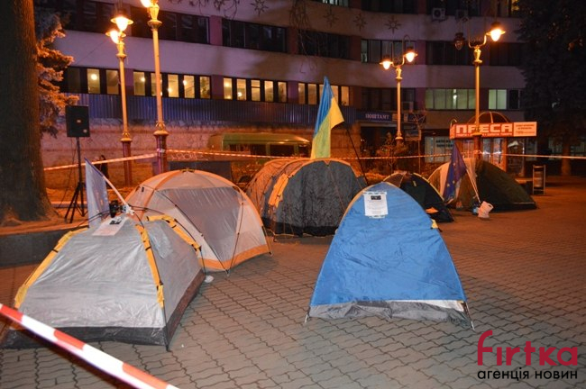 Одними із перших на майдан вийшли іванофранківці. Ще вночі кілька активістів розклали невелике наметове містечко, яке з кожним днем розросталось.