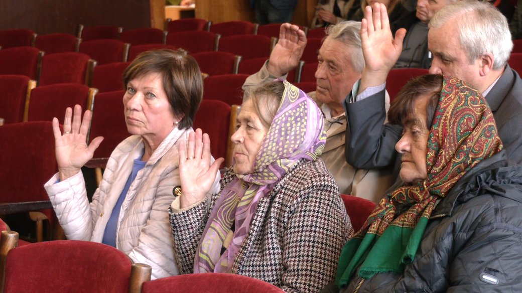 Місцева жителька Любов Коцько прийшла на засідання, адже проти того, щоб у Надвірній діяла церква УПЦ МП.