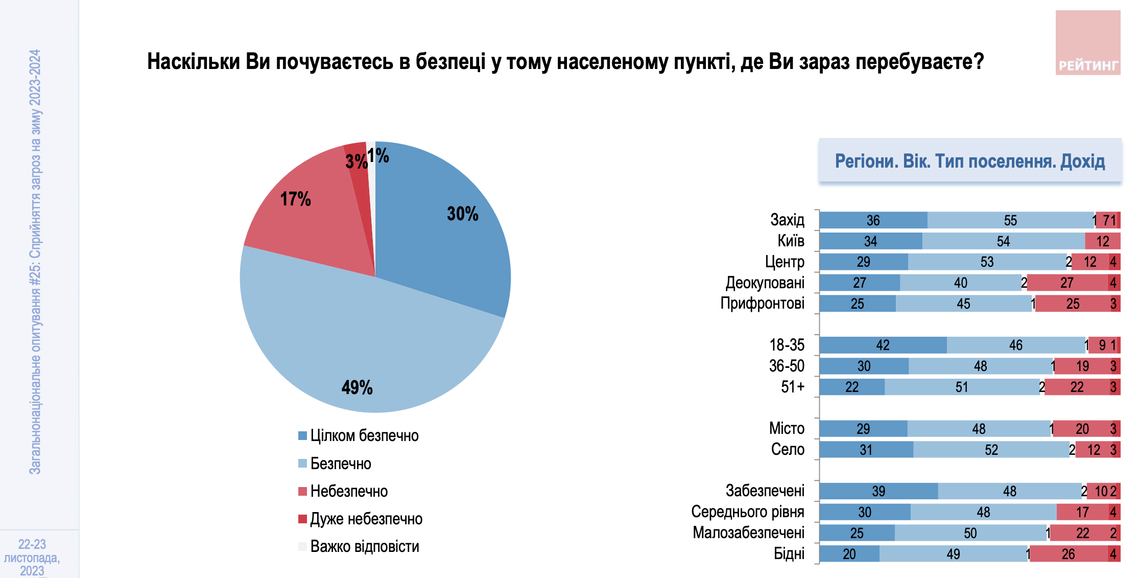 Довідково: опитали 1 000 респондентів віком від 18 років і старше в усіх областях, крім тимчасово окупованих територій Криму та Донбасу, а також територій, де на момент опитування відсутній український мобільний зв'язок.