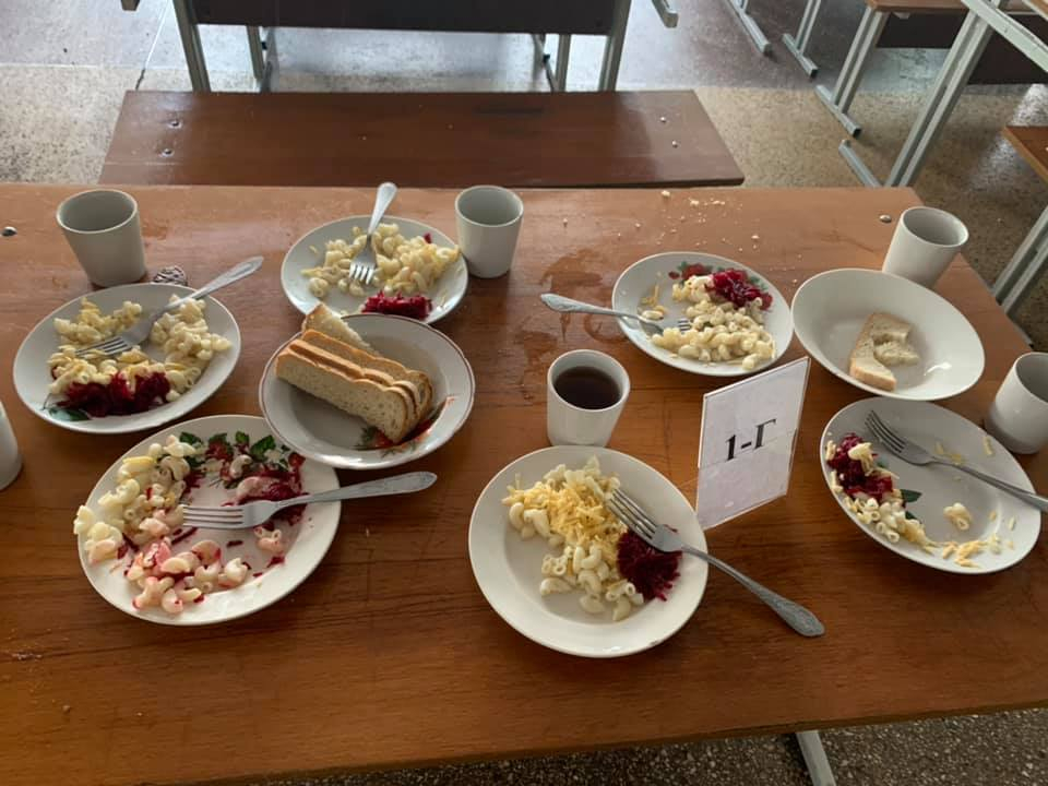 "Разом з батьками та журналістами оглянули приміщення їдальні під час сніданку учнів початкових класів. Ми побачили, що більшість посуду має тріщини та не зовсім чистий, столові прибори криві, стіни вкриті чорним і жирним нальотом, у котлеті наявні хрящі. У буфеті випічка (булочки) розташована поряд із коробкою для грошей (не зовсім добросовісне сусідство). Щодо наявності води у їдальні, то вона була, але відсутні чашки чи/та стакани (пізніше винесли чашки і в нашій присутності наносили дату на графини)". - йдеться у повідомленні.