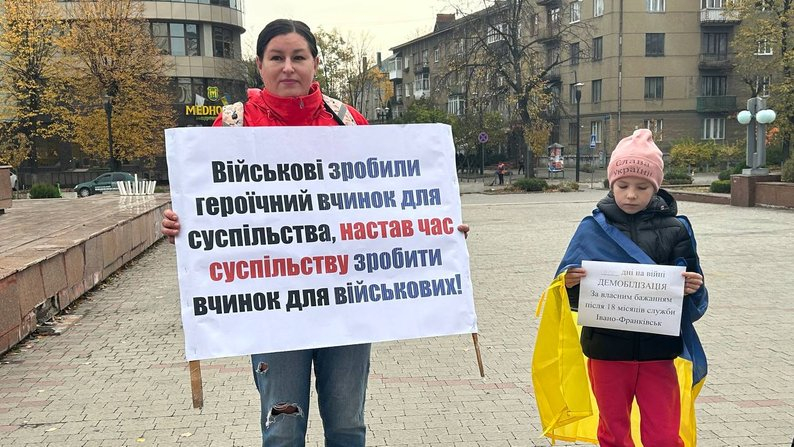 "Я вимагаю демобілізації військовослужбовців, які відслужили 18 місяців. Їм потрібен відпочинок, реабілітація. Хлопців треба змінювати. Мій чоловік — весь час він на "нулі".