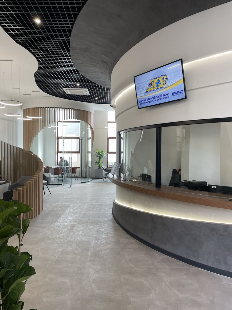 Внутрішній простір нового відділення розділений на ряд зон, кожна з яких сприяє легкому та комфортному діалогу у вирішенні фінансових питань. Для зручності клієнтів відділення обладнане вуличним банкоматом для зняття готівки та її внесення із подальшим зарахуванням на банківський рахунок.