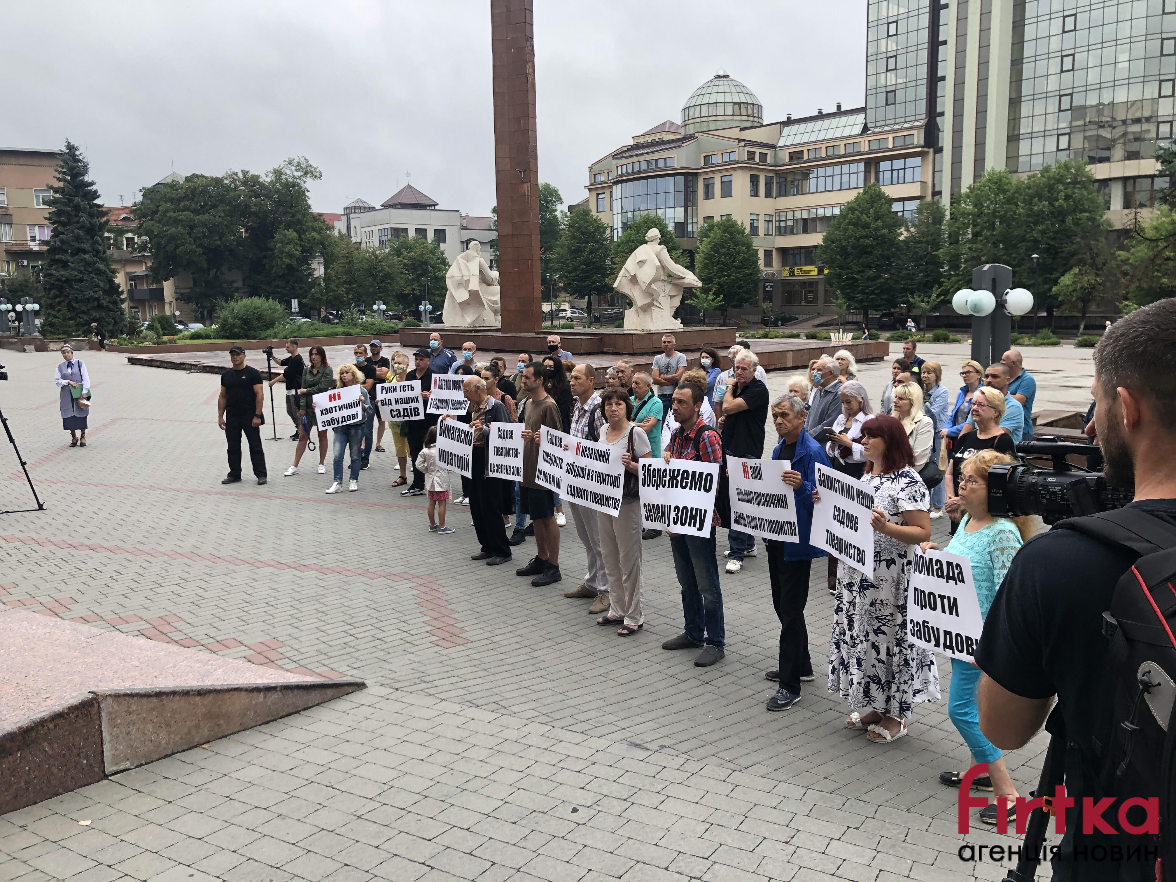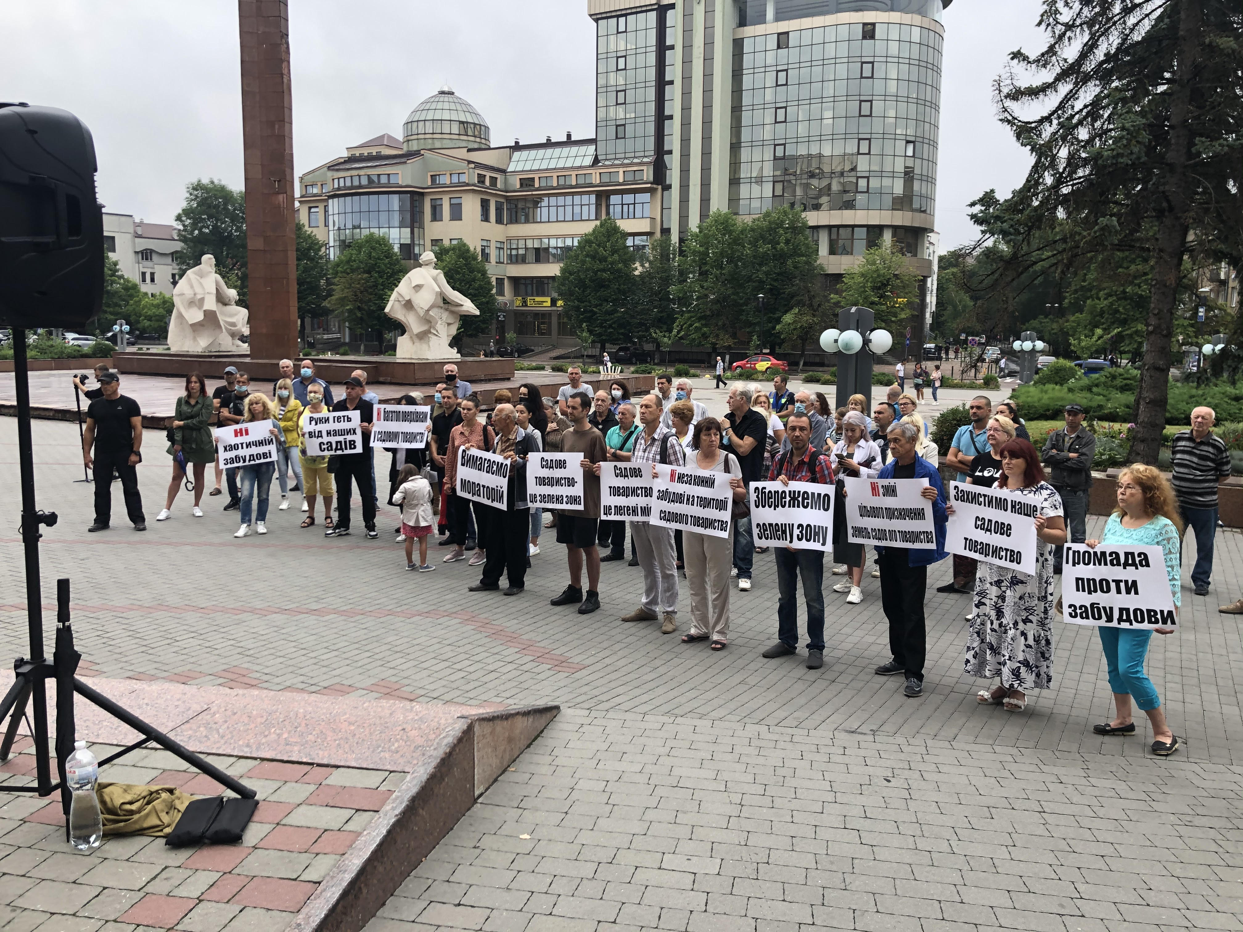 У вівторок, 20 липня, під стінами міськвиконкому зібралися понад пів сотні мешканців Івано-Франківська, котрі вимагали від Івано-Франківської міської ради прийняти рішення "Про запровадження мораторію на будівництво багатоповерхових нових та реконструкцію існуючих будівель і споруд на території Садового товариства "Бистриця Надвірнянська" та на землях навколо садового товариства.