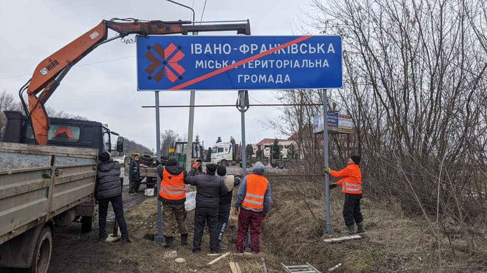 Комунальники розпочали встановлення знаків, які позначають початок і кінець меж Івано-Франківської міської територіальної громади.