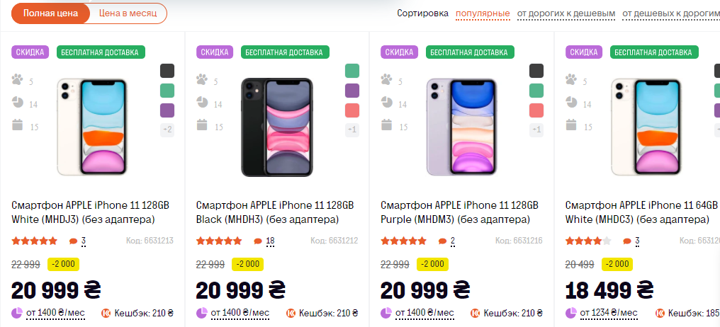 Кореспонденти Фіртки проаналізували актуальні ціни на смартфони. Середня ціна смартфону моделі Apple Iphone 11 128 Гб становить близько 21 тисячі гривень.