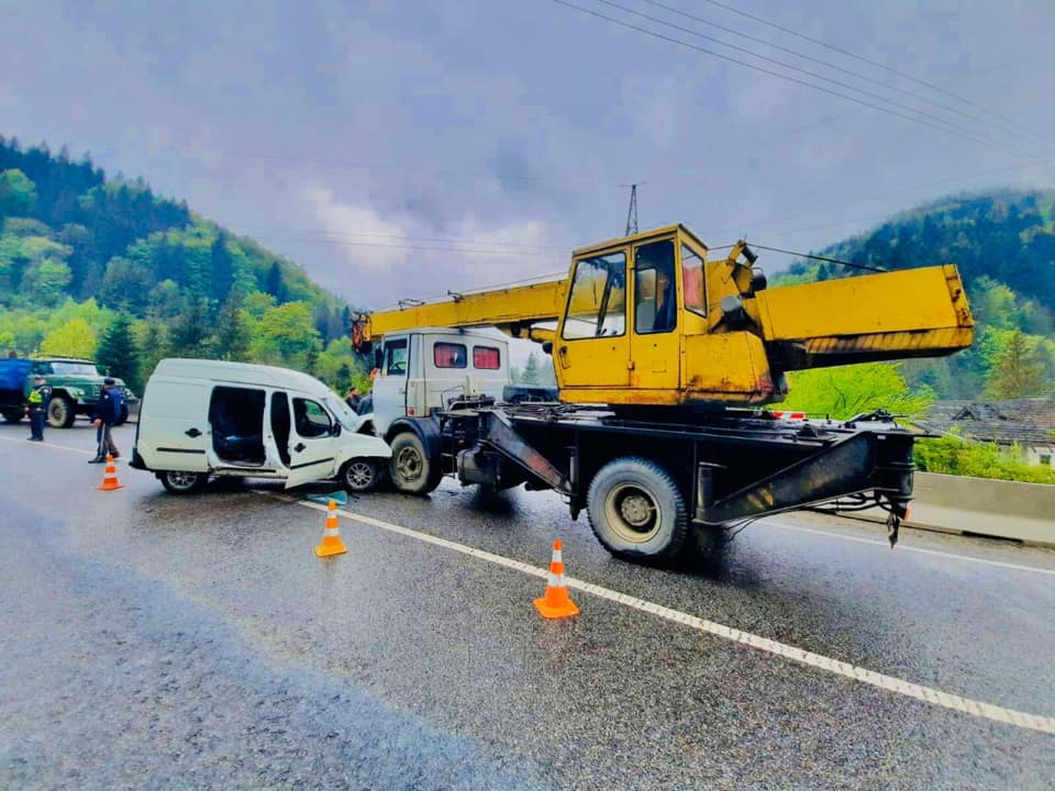 Правоохоронці попередньо встановили, що 36-річний мешканець смт Ворохта, керуючи автомобілем «Fiat Doblo», рухаючись в сторону м. Яремче, на заокругленій ділянці дороги, не впорався із керуванням, виїхав на зустрічну смугу руху та допустив зіткнення з вантажним автокраном «МАЗ» під керуванням 47-річного мешканця Надвірнянського району.