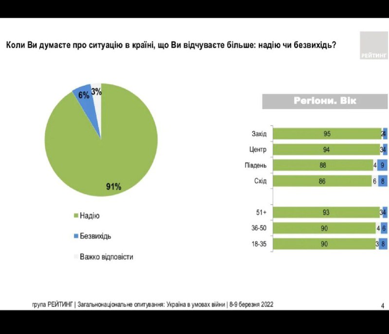 До слова, 91% з опитаних відчувають надію та віру в перемогу, 6% - безвихідь та ще 3% складно відповісти.