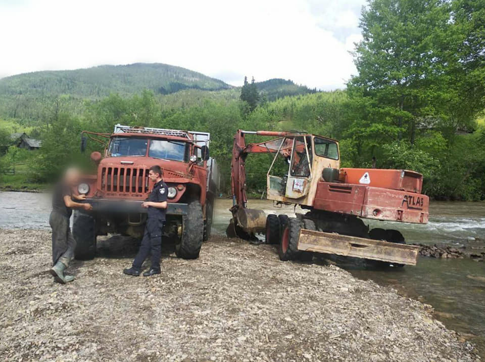"19 червня о 16:20 поліцейські під час несення служби виявили екскаватор "Атлас" та вантажний автомобіль "Урал", які незаконно добували піщано-гравійну суміш у селі Бистриця на річці Бистриця.
