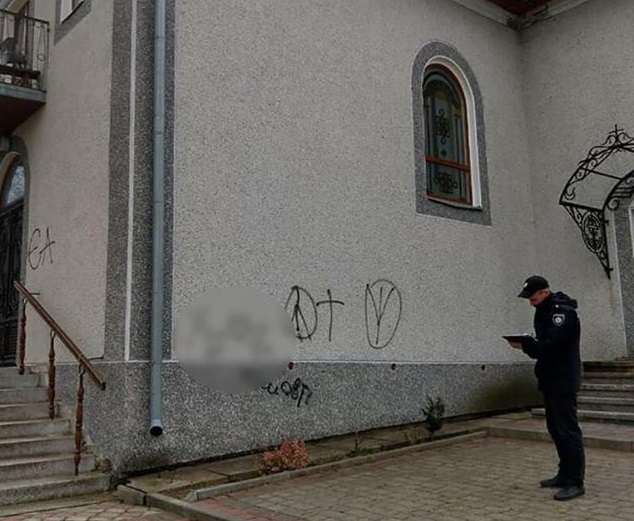 До поліції звернувся місцевий священик і повідомив, що виявив на стінах церкви розписи фарбою.
